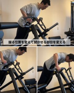 背中(広背筋・僧帽筋・肩の後ろ)を鍛えるトレーニングマシンです。