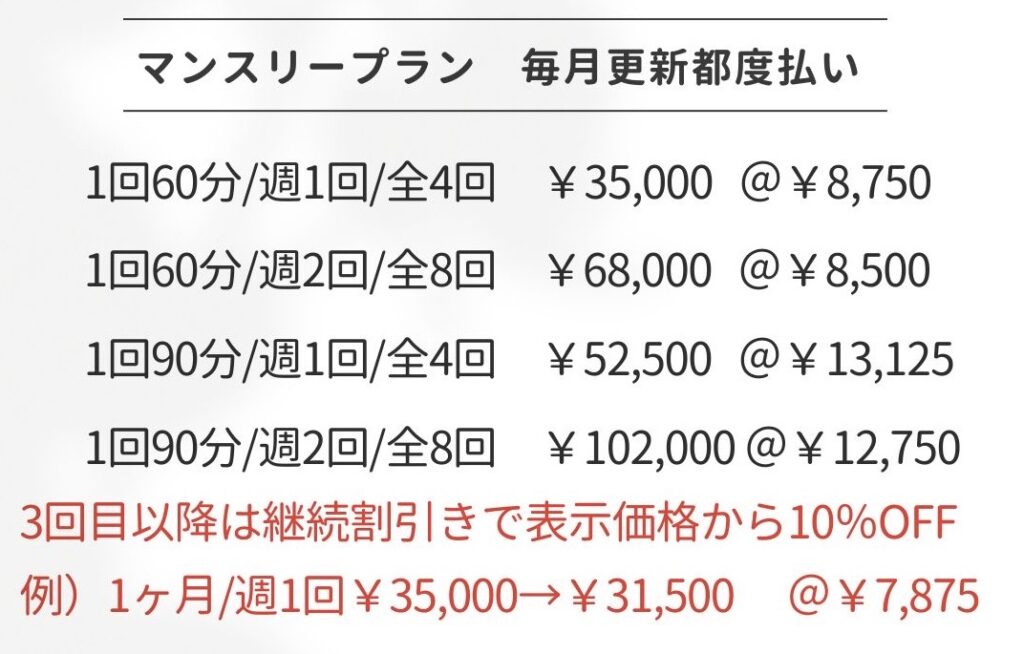 長くご利用する方へオススメです。価格や時間が最適なコースです。